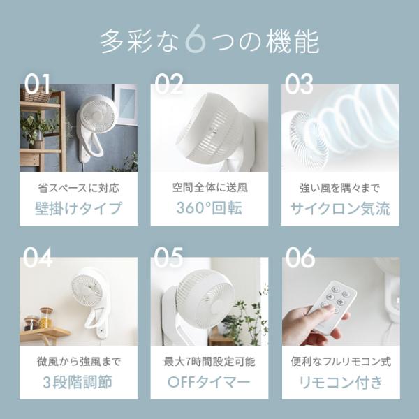 360度首振り 壁掛け扇風機 リモコン式 サーキュレーター 小型