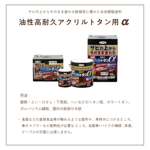 油性塗料 サビの上からそのまま塗れる 油性高耐久アクリルトタン用α 新茶 12kg アサヒペン 1回塗り