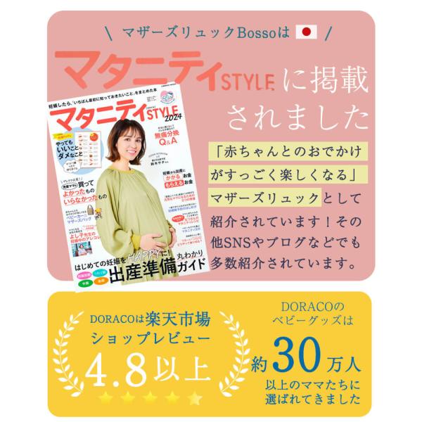DORACO ★★★★★ 4.5(270件) ママの要望が詰まった多機能リュック 送料無料 マザーズリュック 軽量 大容量 撥水 背面ポケット マザーズバッグ リュック Bosso DORACOドラコ 日本製 ★★★★★ 4.64(14件) 商品の詳細については【詳細】よりご覧ください。 DORACO 人気ランキング もっと見る DORACO 商品一覧 もっと見る