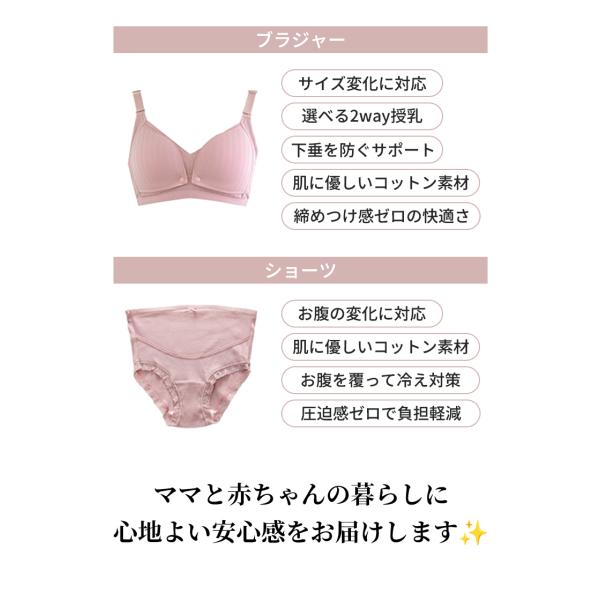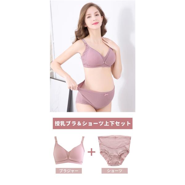 授乳ブラ&ショーツ 上下セット ノンワイヤー マタニティ ブラ 授乳 ブラジャー マタニティショーツ 下垂 垂れ防止 ブラショーツセット 下着 補正用 かわいい