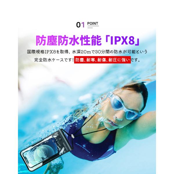 - 国際規格IPX8を取得、 水深20mで30分間の防水が可能という完全防水ケースです!