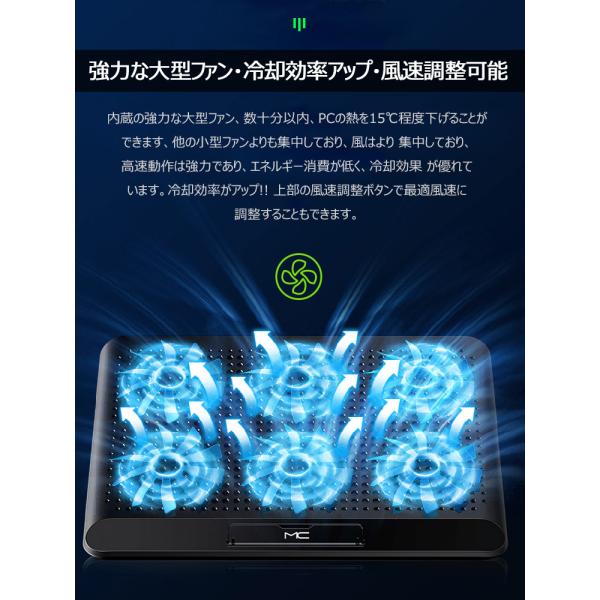 ノートパソコン冷却 冷却台 冷却ファン 静音 USB 給電 LED搭載 風量調節 ノートPCクーラー 冷却マット ノートPCスタンド 放熱