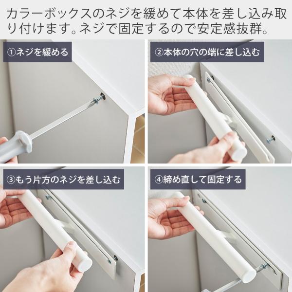 カラーボックスに使われているネジをそのまま使って取り付けることが出来ます。