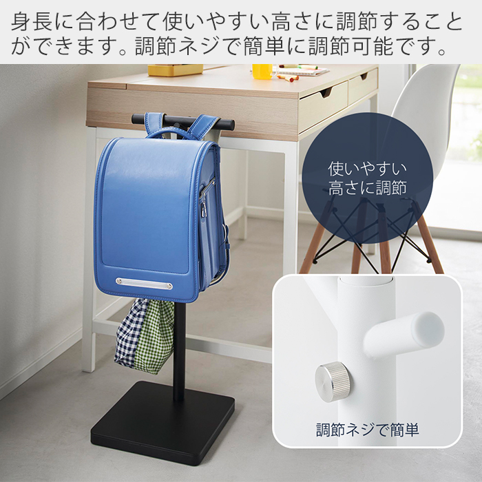 お子さまの成長に合わせて高さが調節できるランドセルスタンド。