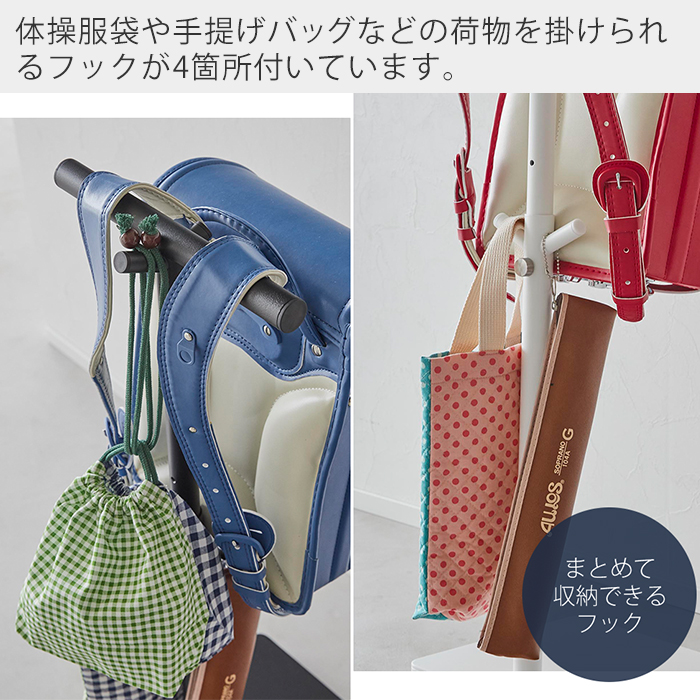 ランドセル掛け ランドセル 伸縮 スタンド バッグ収納 鞄掛け 帽子掛け 一括収納 ハンガー フック 通学グッズ スチール 玄関 荷物掛け 子供 キッズ おしゃれ 掛け スリム インテリア 入学祝い 卒業祝い プレゼント ヤマザキ実業 ヤマジツ