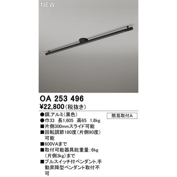オーデリック 簡易取付レール ブラック 1.6m OA253496 (OA253364 代替品)