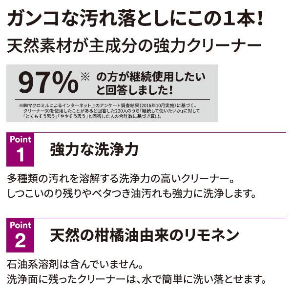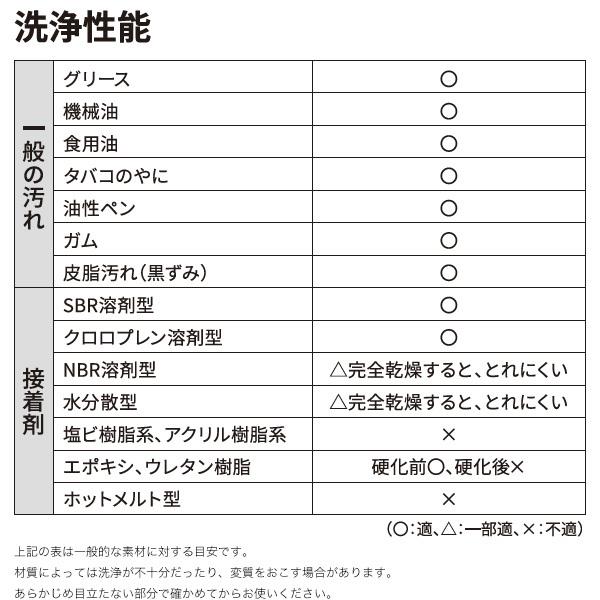 多種類の汚れを溶解する洗浄力の高いクリーナー。しつこいのり残りやベタつき油汚れも強力に洗浄します。
