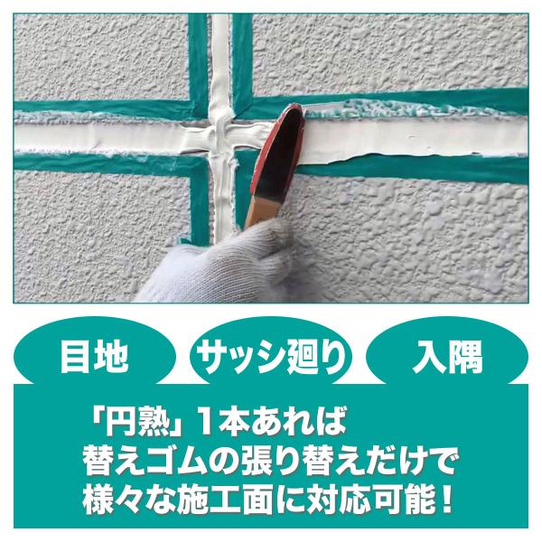 各部材の目地、サッシ廻り、入隅部など「円熟」1本あれば替えゴムの張り替えだけで様々な施工面に対応可能!