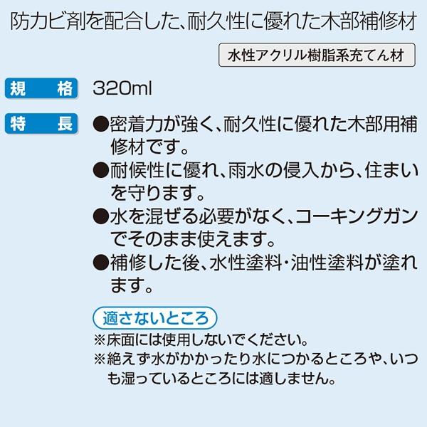 ●密着力が強く、耐久性に優れた木部補修材です。