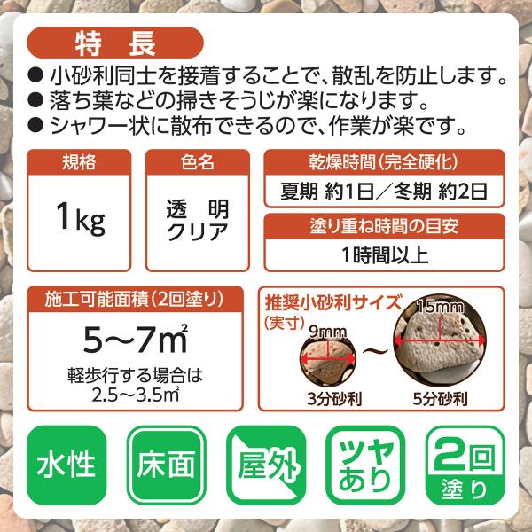 接着剤 砂利を固める水性接着剤 透明クリア 1kg アサヒペン 砂利 固定 砂利 散乱防止 水性 シャワーヘッド付き容器 玄関 庭 駐車場 日本製