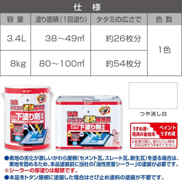 油性シーラー 油性シリコン遮熱屋根用 専用下塗り剤 8kg つや消し白 カンペハピオ 遮熱塗料 ペンキ 油性 シーラー 塗料 屋根 油性塗料 屋根塗料
