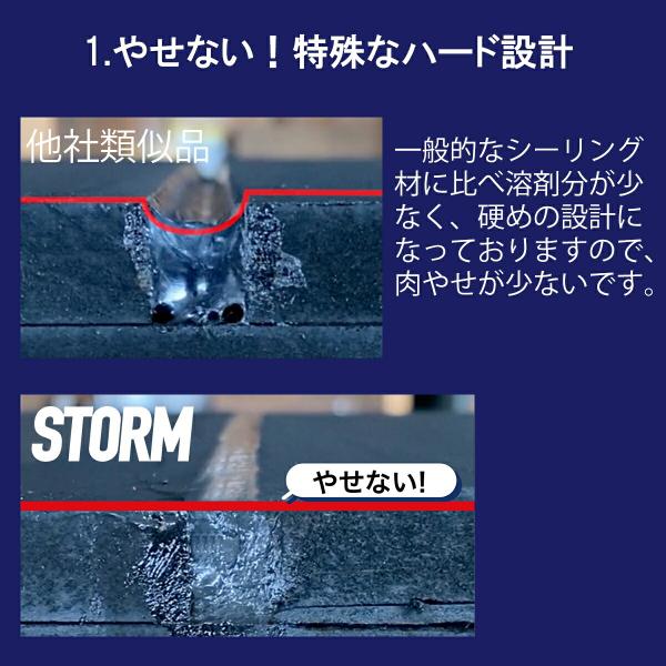 一般的なシーリング材に比べ溶剤分が少なく、硬めの設計になっておりますので、肉やせが少ないです。