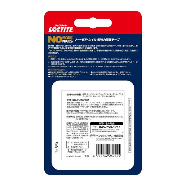 両面テープ 超強力 ロックタイト ノー・モア・ネイル 超強力両面テープ 幅19mm×長さ1.5m NMN-T01 ヘンケル 強力両面テープ 両面テープ 強力 テープ M10