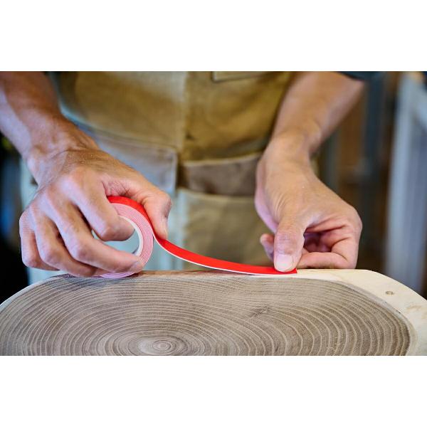 耐水性・耐UV性に優れた、屋内・屋外どちらでも使用できる超強力な両面テープです。耐久性が高く、屋内でも屋外でも高い接着性能を長期間にわたり維持します。