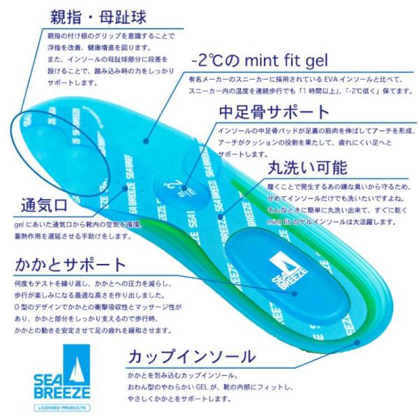 シーブリーズ SEA BREEZE ジェルインソール 冷感 COOLMAX 男女兼用 ユニセックス(メール便)