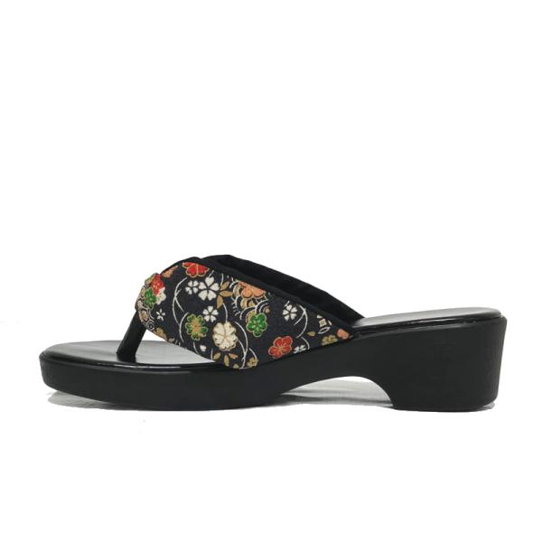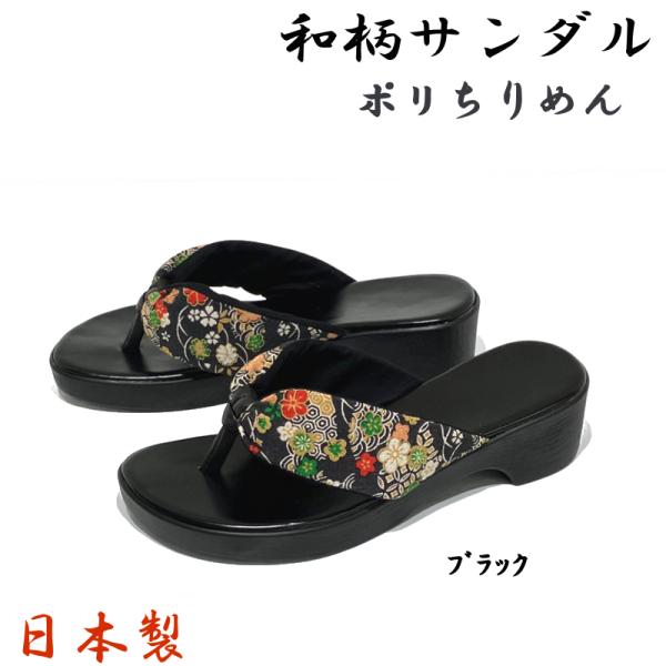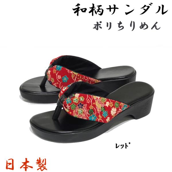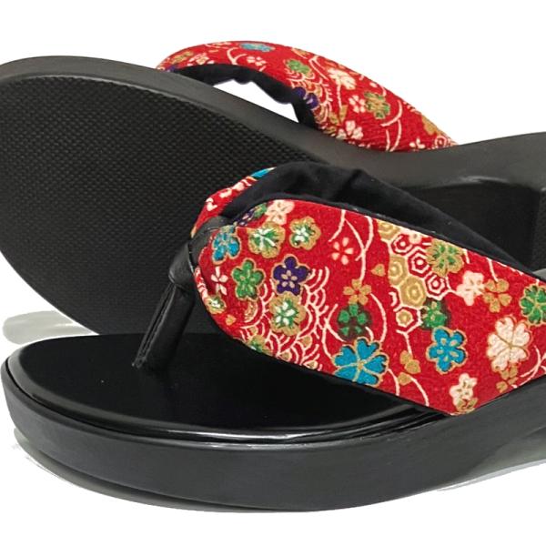 下駄風 和柄サンダル ポリちりめん No.8031 日本製 ブラック・レッド