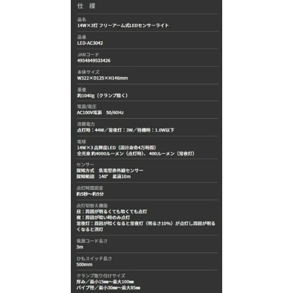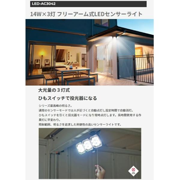 e-toolヤフー店 ★★★★★ 4.5(184件) 送料無料 14Wx3灯 フリーアーム式LEDセンサーライト LED-AC3042 ライテックス e-toolヤフー店 人気ランキング もっと見る e-toolヤフー店 商品一覧 もっと見る