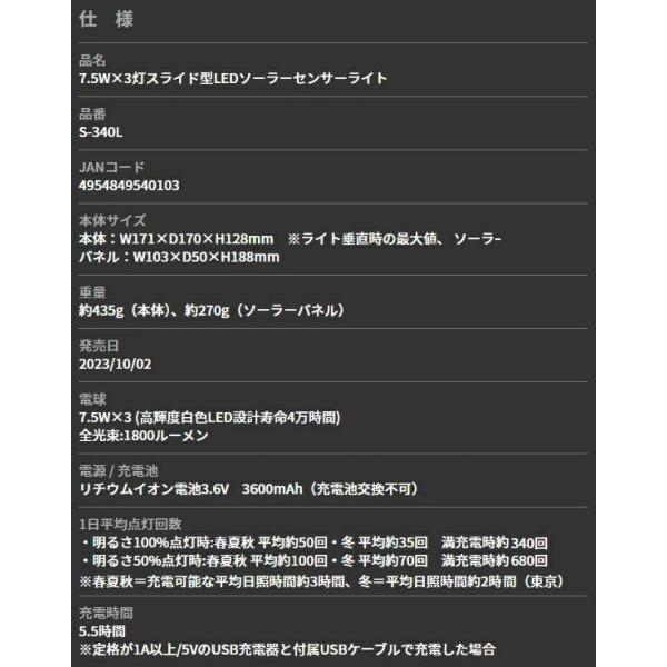 e-toolヤフー店 ★★★★★ 4.5(184件) 送料無料 7.5W×3灯スライド型LEDソーラーセンサーライト USB・ソーラー充電 S-340L ライテックス e-toolヤフー店 人気ランキング もっと見る e-toolヤフー店 商品一覧 もっと見る