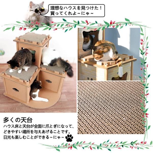 ●【ネコの大切のお家】ハウス床と天台が全面に爪とぎになって、どきやすい場所を与えあげることです。日光も楽しむことができて猫ちゃんにいい生活環境を作られます。