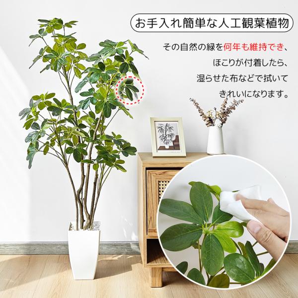 RAKU フェイクグリーン 人工観葉植物 カポック シェフレラ 高さ約125cm 人工観葉樹 造花 陶器風鉢付 世話不要 本物そっくり オフィス 開店祝い お手入れ簡単