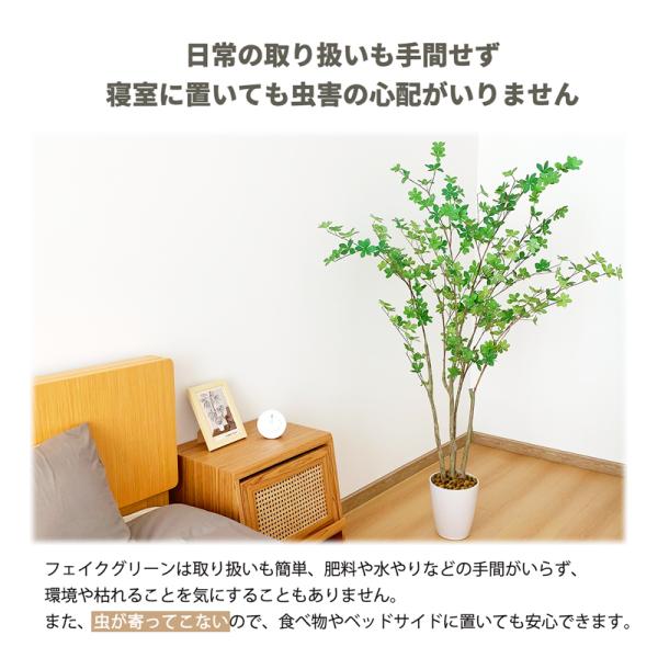 [簡単な手入れ]フェイクグリーンなので、お手入れ簡単です。葉が汚れた場合、ハタキで軽く拭き落としてください。水やりや虫害への心配などもいりません、植物でお部屋を飾りたいのに世話する時間がない方におすすめです。