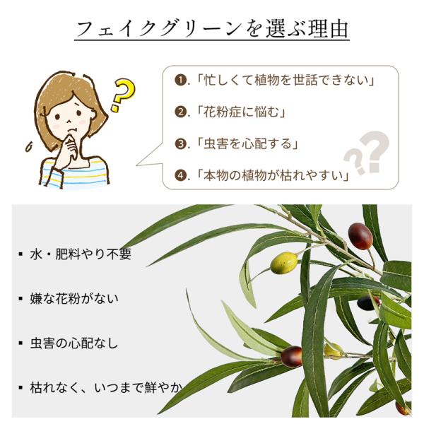 RAKU フェイクグリーン オリーブ 高さ135cm 観覧植物 人工観葉樹 観葉植物 造花 お手入れ不要 虫害の心配なし 自然な果実と葉っぱ 陶器風ポット