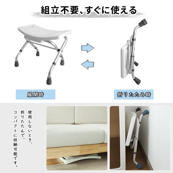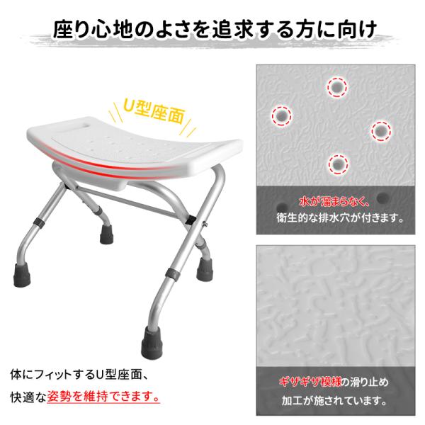 RAKU バスチェア 風呂椅子 介護用品 お風呂 シャワー チェア 背もたれなし 高さ3段階調節 折畳式 アルミ合金パイプ 耐荷重136kg 組立簡単 工具不要