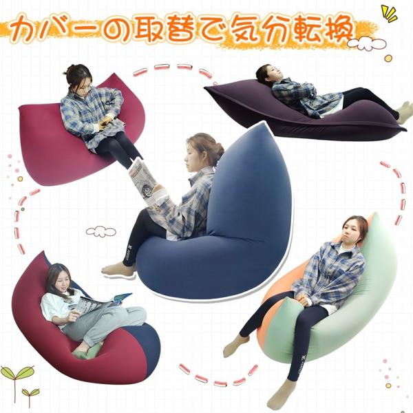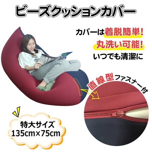 RAKU ビーズクッションカバー ビーズソファーカバー 替え用カバー カバーのみ 付け替え 無地 ファスナー付き 洗濯可能 着脱簡単 135x75cm 特大 6色選択可