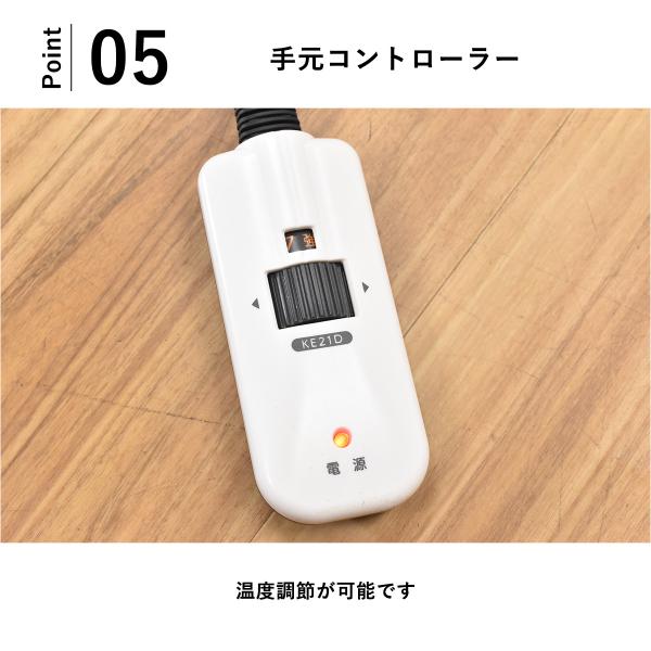 手元コントローラーでスイッチの入り切り、温度調整が出来ます。