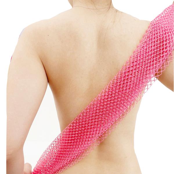 両手ひもがついていますので、体のすみずみまで簡単に洗え、網目が心地良い刺激となって快適なバスタイムがお楽しみいただけます。