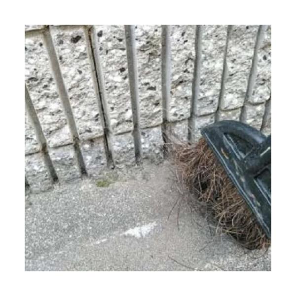 (1)雑草を根元からしっかりと取り除き、ほうきなどで清掃します。