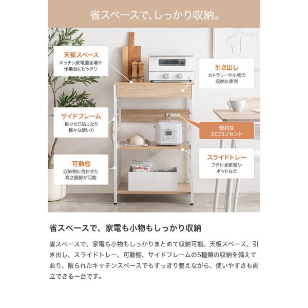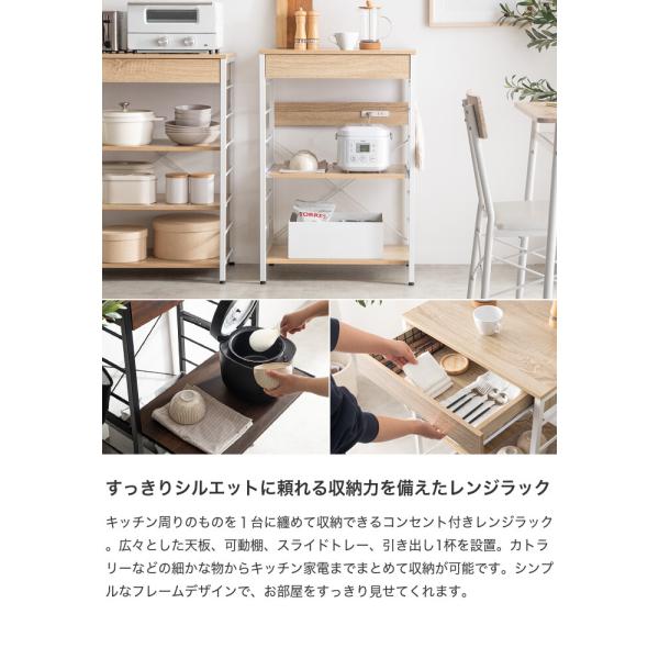 レンジ台 レンジラック キッチン収納 キッチンラック キッチンボード ラック シェルフ 棚 ワゴン キャスター付き コンセント付き 2口 コンパクト
