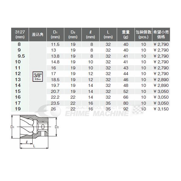 コーケン 9.5sq. ナットツイスター 8mm 3127-8 Ko-ken 工具