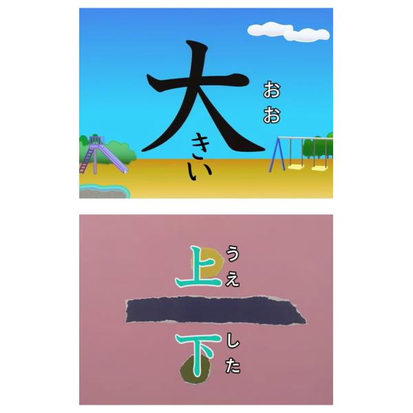 小学校1年生で習う漢字80文字の「書き順・読み方・主な使い方」を映像で学べる、にっく映像のDVD「おぼえちゃおう!かんじ入門編」。