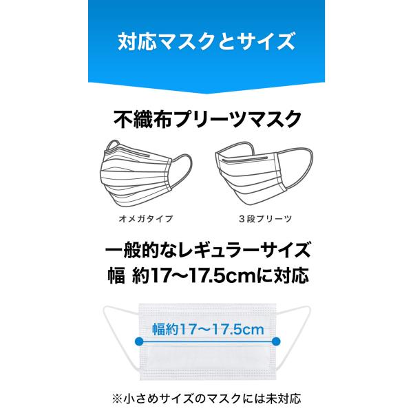 対応マスク:不織布マスク幅約17〜17.5cmに使用可(布マスクには未対応)