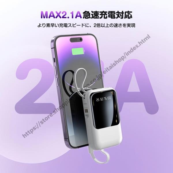 モバイルバッテリー 20000mAh 大容量 スマホ充電器 4台同時充電 急速充電 ケーブル内蔵 残量表示 懐中電灯 軽量 小型 iPhone/Android対応 出張 旅行 地震 防災