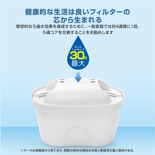 カートリッジの交換時期の目安(1個あたり):1日5.3L使用の場合1ヶ月