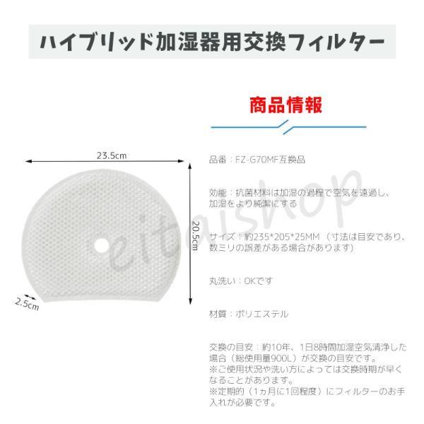 空気清浄機 シャープ SHARP FZ-G70MF 加湿フィルター KI-GS50 KI-GS70 KI-HS50 KI-HS70 KI-JS50 KI-JS70 KI-LS50 集じん・制菌HEPA 互換品 非純正品 1枚入り