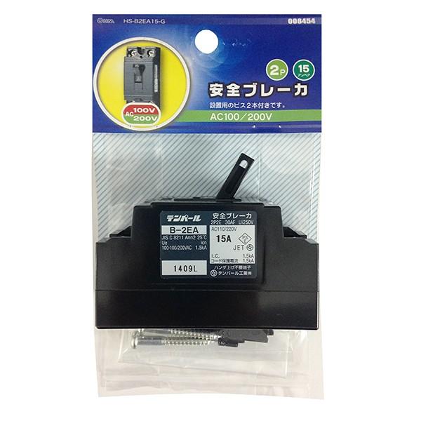 オーム電機 安全ブレーカー 15A AC100/200V HS-B2EA15-G 00-8454