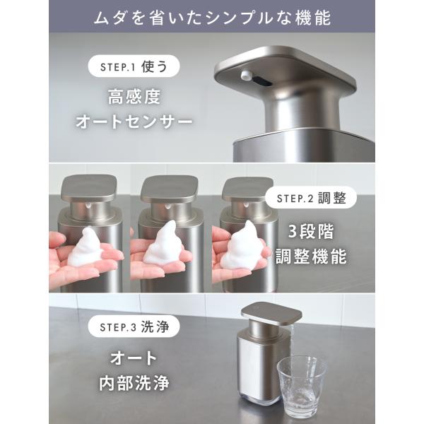 商品名: ソープディスペンサー ステンレス スクエア 自動 泡 液体 充電式 おしゃれ 大容量 自動洗浄 オートソープディスペンサー CICADA