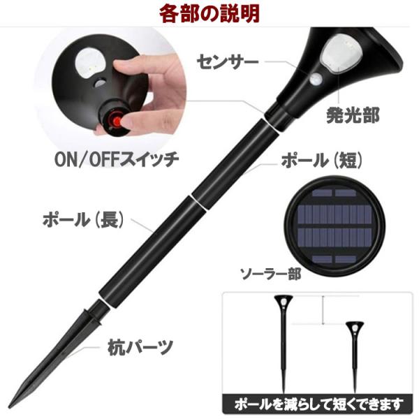 LEDソーラーライト 2個セット センサーライト 人感センサー式 ポールライト 暗くなると自動点灯 庭園灯 ガーデンライト 防水 防犯 SGL-SS-2set
