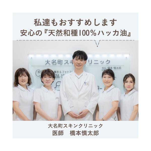 天然の和種ハッカを100%使用したハッカ油です。医師監修のもと、化粧品製造販売業・化粧品製造業の認可を受けている工場で生産された、安心・安全の日本製です。