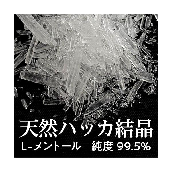 純度99.5%。天然のハッカ結晶です。結晶は40℃以上のお湯、又はエタノールで溶かすことができます。