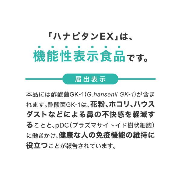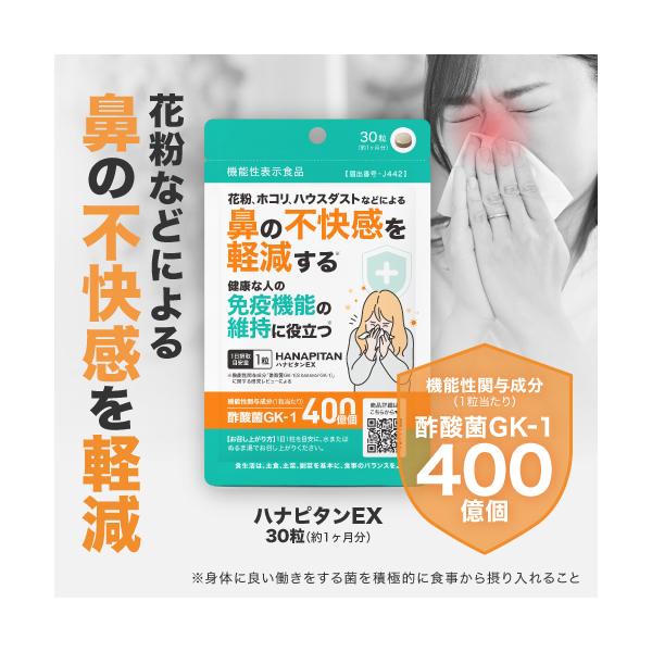 花粉 ホコリ ハウスダスト などによる 鼻の不快感を軽減 医師監修 機能性表示食品 サプリ 酢酸菌 ハナピタンEX 30粒