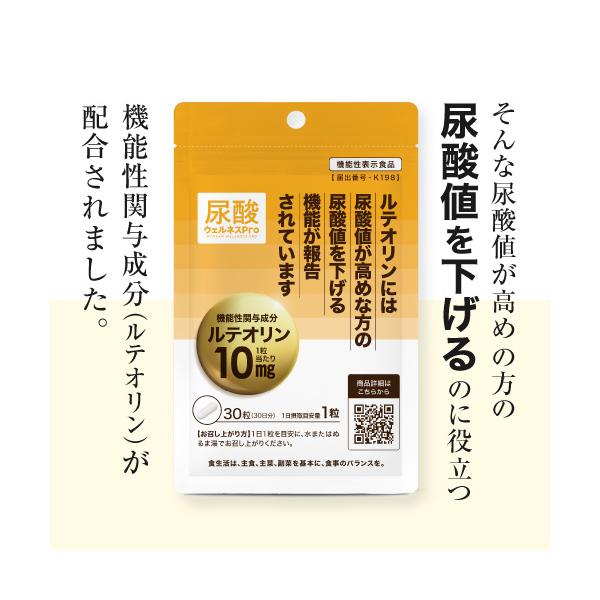 尿酸値を下げる サプリ 医師監修 ルテオリン 機能性表示食品 尿酸ウェルネスPro 30粒 約1カ月分