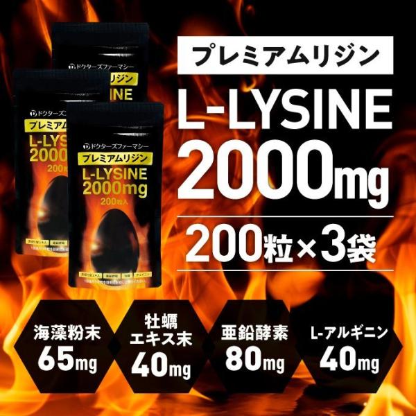 Lリジン 2000mg 国産 リジン サプリ アミノ酸 牡蠣 亜鉛 アルギニン サプリメント ドクターズファーマシー プレミアムリジン 200粒 3袋