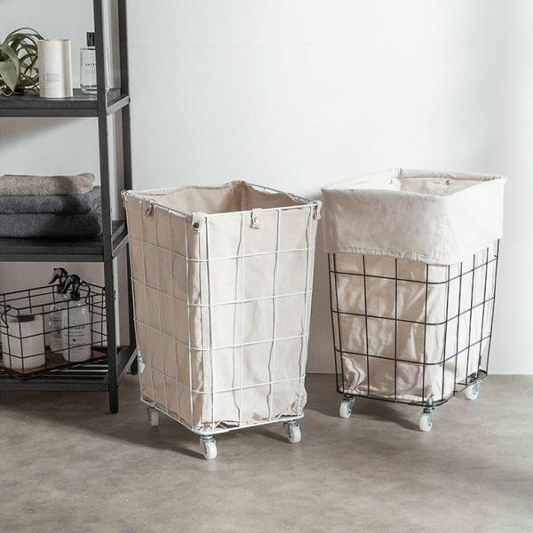 ランドリーバスケット キャスター ワイヤーバスケット おしゃれ 大容量 かご バスケット 収納 スチール 内布 洗濯物入れ 北欧 リゾート インテリア 西海岸 64120