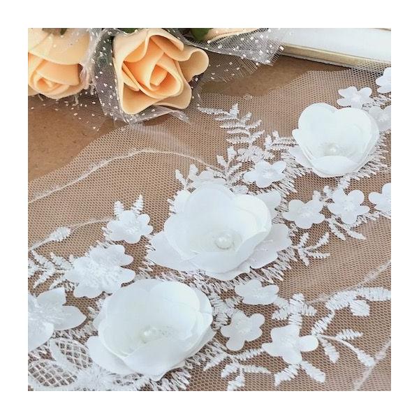 モチーフ チュールモチーフ 衣装 装飾 ダンス バレエ 新体操 レオタード バトントワリング ホワイト 白 花 3D モチーフ アップリケ ストーン付 キラキラ 花