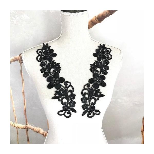ブラックのお花のモチーフレースペアセットになります。