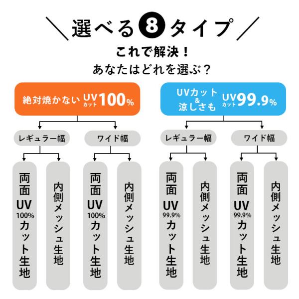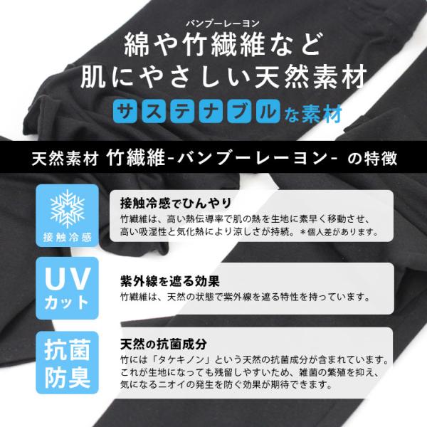 竹繊維(バンブーレーヨン、竹レーヨン)サステナブルな素材/洗っても落ちないUVカット率/UV遮蔽率は国内機関で検査済み/ゆったり伸びる/&edge.オリジナルサイズ調整付き/選べる2種類のUVカット素材/選べる2種類のサイズ幅/選べる2種類の内側生地